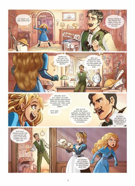 Jeder Band der Comic-Serie »Die vergessenen Welten« umfasst ein abgeschlossenes Abenteuer sowie einen Auszug aus Amys Expeditionstagebüchern.