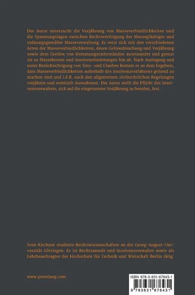 Der Autor untersucht die Verjährung von Masseverbindlichkeiten und die Spannungslagen zwischen Rechtsverfolgung der Massegläubiger und ordnungsgemäßer Masseverwaltung. Er setzt sich mit den verschiedenen Arten der Masseverbindlichkeiten, deren Geltendmachung und Verjährung sowie dem Greifen von Hemmungstatbeständen auseinander und grenzt sie zu Massekosten und Insolvenzforderungen hin ab. Nach Auslegung und unter Berücksichtigung von Treu- und Glauben kommt er zu dem Ergebnis, dass Masseverbindlichkeiten außerhalb des Insolvenzverfahrens geltend zu machen sind und i.d.R. nach den allgemeinen zivilrechtlichen Regelungen verjähren und ermittelt Ausnahmen. Der Autor stellt die Pflicht des Insolvenzverwalters, sich auf die eingetretene Verjährung zu berufen, fest.