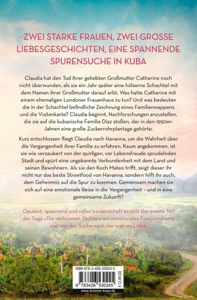 London in der Gegenwart. Es beginnt mit einer kleinen hölzernen Schachtel mit dem Namen ihrer Großmutter und der Zeichnung eines Familienwappens: Claudia fällt ein geheimnisvolles Erbstück in die Hände und ihre Neugier ist geweckt - ist das der Schlüssel, um endlich mehr über das Leben ihrer verstorbenen Großmutter zu erfahren? Ihre Nachforschungen stoßen sie auf die kubanische Familie Diaz, der in den 1950er-Jahren eine große Zuckerrohrplantage gehörte. Kurzentschlossen fliegt Claudia nach Havanna, um mehr über die Vergangenheit ihrer Familie zu erfahren. Kaum angekommen ist sie wie verzaubert von der quirligen, vor Lebensfreude sprudelnden Stadt und spürt eine ungekannte Verbundenheit mit dem Land und seinen Bewohnern. Als sie den Koch Mateo trifft, zeigt dieser ihr nicht nur das beste Street Food von Havanna, sondern hilft ihr auch dabei, dem Geheimnis um ihre Großmutter auf die Spur zu kommen. Gemeinsam machen sie sich auf eine emotionale Reise in die Vergangenheit, in das opulente und leidenschaftliche Kuba der 1950er Jahre.