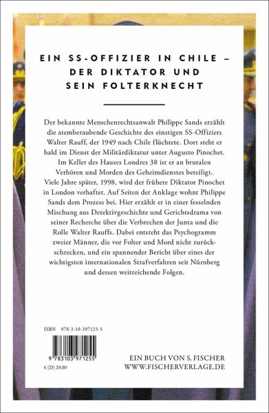 Der bekannte Menschenrechtsanwalt und Bestseller-Autor Philippe Sands erzählt die atemberaubende Geschichte des einstigen SS-Offiziers Walter Rauff, der 1949 nach Chile flüchtete. Dort steht er von 1973 an im Dienst der Militärdiktatur unter Augusto Pinochet. Im Keller des Hauses Londres 38 ist er an brutalen Verhören und Morden des Geheimdienstes beteiligt.