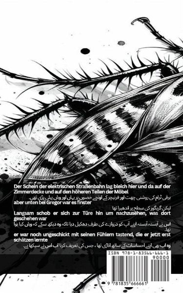 Der Schein der elektrischen Straßenbahn lag bleich hier und da auf der Zimmerdecke und auf den höheren Teilen der Möbel برقی ٹرام کی روشنی چھت اور فرنیچر کے اونچے حصوں پر یہاں اور وہاں پیلی پڑی تھی۔ aber unten bei Gregor war es finster لیکن گریگور کی سطح پر اندھیرا تھا Langsam schob er sich zur Türe hin um nachzusehen, was dort geschehen war اس نے آہستہ آہستہ اپنے آپ کو دروازے کی طرف دھکیل دیا تاکہ وہ دیکھ سکے کہ وہاں کیا ہوا تھا۔ er war noch ungeschickt mit seinen Fühlern tastend, die er jetzt erst schätzen lernte وہ اب بھی اپنے احساسات کے ساتھ اناڑی تھا ، جس کی تعریف کرنا اب اس نے سیکھا ہے۔ Seine linke Seite schien eine einzige lange, unangenehm spannende Narbe اس کے بائیں طرف ایک لمبا، ناگوار تنگ نشان لگ رہا تھا und er mußte auf seinen zwei Beinreihen regelrecht hinken اور اسے اپنی ٹانگوں کی دو قطاروں پر لفظی طور پر لنگڑانا پڑا۔ Ein Beinchen war übrigens im Laufe der vormittägigen Vorfälle schwer verletzt worden اتفاق سے صبح کے واقعات کے دوران ان کی ایک ٹانگ شدید زخمی ہو گئی تھی۔ es war fast ein Wunder, daß nur eines seiner Beine verletzt worden war یہ تقریبا ایک معجزہ تھا کہ اس کی صرف ایک ٹانگ زخمی ہو گئی تھی۔ und er schleppte das Bein leblos nach اور اس نے اپنی ٹانگ کو بے جان گھسیٹ لیا Erst bei der Tür merkte er, was ihn dorthin eigentlich gelockt hatte جب وہ دروازے پر پہنچا تو اسے احساس ہوا کہ اصل میں اسے وہاں کس چیز نے راغب کیا تھا۔