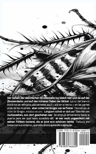 Der Schein der elektrischen Straßenbahn lag bleich hier und da auf der Zimmerdecke und auf den höheren Teilen der Möbel La luz del tranvía eléctrico se reflejaba pálidamente aquí y allá en el techo y en las partes altas de los muebles. aber unten bei Gregor war es finster Pero abajo, al nivel de Gregor, estaba oscuro. Langsam schob er sich zur Türe hin um nachzusehen, was dort geschehen war Se empujó lentamente hacia la puerta para ver qué había sucedido allí. er war noch ungeschickt mit seinen Fühlern tastend, die er jetzt erst schätzen lernte Todavía era torpe con sus antenas, que sólo ahora aprendió a apreciar. Seine linke Seite schien eine einzige lange, unangenehm spannende Narbe Su lado izquierdo parecía tener una cicatriz larga y desagradablemente apretada. und er mußte auf seinen zwei Beinreihen regelrecht hinken y tuvo que cojear literalmente sobre sus dos filas de patas Ein Beinchen war übrigens im Laufe der vormittägigen Vorfälle schwer verletzt worden Por cierto, una de las piernas resultó gravemente herida durante los incidentes de la mañana. es war fast ein Wunder, daß nur eines seiner Beine verletzt worden war Fue casi un milagro que sólo una de sus piernas estuviera herida und er schleppte das Bein leblos nach y arrastró su pierna sin vida Erst bei der Tür merkte er, was ihn dorthin eigentlich gelockt hatte Sólo cuando llegó a la puerta se dio cuenta de lo que realmente lo había atraído hasta allí. es war der Geruch von etwas Eßbarem gewesen das ihn dahin gelockt hatte Fue el olor de algo comestible lo que lo había atraído allí.