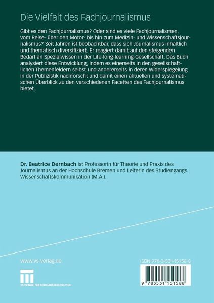 Gibt es den Fachjournalismus? Oder sind es viele Fachjournalismen, vom Reise- über den Motor- bis hin zum Medizin- und Wissenschaftsjournalismus? Seit Jahren ist beobachtbar, dass sich Journalismus inhaltlich und thematisch diversifiziert. Er reagiert damit auf den steigenden Bedarf an Spezialwissen in der Life-long-learning-Gesellschaft. Das Buch analysiert diese Entwicklung, indem es zum einen den Themenbereichen selbst und deren Widerspiegelung in der Publizistik nachforscht.