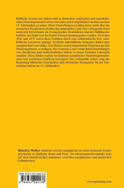 Bildliche Szenen aus Indien sind in deutschen, englischen und amerikanischen Missionsjournalen sowie erweckter und evangelikaler Literatur aus dem 19. Jahrhundert zu sehen. Diese Darstellungen erzählen meist mehr über die westlichen Rezipienten als über das dargestellte Land. Das vorliegende Buch analysiert Holzschnitte im Evangelischen Heidenboten und der Halbbatzenkollekte, die beide von der Basler Mission herausgegeben wurden. Zwischen 1846 und 1870 waren diese Grafiken durch eine emblematische bzw. sinnbildliche Leseweise geprägt. Textliche und bildliche Strategien halfen dem europäischen Leser dabei, eine Brücke zu den imaginierten Menschen aus den Missionsgebieten zu schlagen. Der westliche Leser wurde durch Darstellungen von christlichen und nichtchristlichen Indern zu einem frommen Lebensstil ermahnt. Diese Bilder wurden im Rahmen europäischer Darstellungstraditionen von westlichen Grafikern konzipiert. Die vorliegende Arbeit zeigt die Bedeutung biblischer Geschichten undchristlicher Ikonografie für die Darstellung Indiens im 19. Jahrhundert.