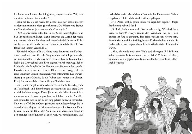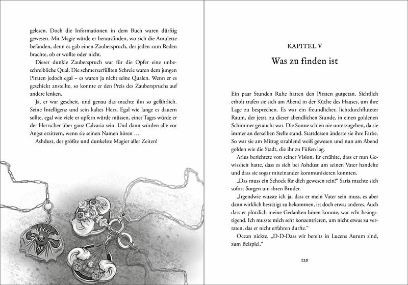 Die Mischung aus Steampunk, Piratenabenteuern und fantastischer Magie macht die Welt unglaublich lebendig. Die Illustrationen sind nicht nur schön gezeichnet, sondern vermitteln durch ihre Ausdrucksstärke die gleiche Stimmung wie die beiden Vorgängerbände – ein harmonisches Gesamtbild. Besonders bemerkenswert finde ich die Darstellung der Zwillinge Damon und Kiera, die mir von Anfang an sehr sympathisch waren.