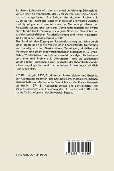 Das stereotype Gerede von den "Volksparteien" und dem Volkspartei-Typus, sei es im positiven wie im negativen Sinne, führt in der Parteienforschung und -lehre nicht mehr weiter. Entweder müssen bisherige theoretisch-analytische oder typologische Ansätze gründlich reformuliert oder, besser noch, es sollte eine neue soziologische (Teil-)Theorie der Großpartei mittlerer Reichweite entfaltet werden. In diesem Lehrbuch über die "Volkspartei - Typus und Wirklichkeit" wird zum er stenmal versucht, den bisherigen Diskussionsverlauf über die Problematik "Volks partei" von 1905 an zu verfolgen, die theoretisch-analytischen, typologischen und politischen Konzeptualisierungen zu erörtern und in den verzweigten und diffusen Gesamtverlauf der Diskussion systematisch einzuordnen. Es werden auch die Abwe ge und Irrwege aufgezeigt. Damit wird zugleich ein gutes Stück der Geschichte der sozialwissenschaftlichen Parteienforschung und -lehre in Deutschland und in der Bundesrepublik geschrieben. Obschon ein Lehrbuch zur Problematik "Volkspartei" nicht sehr viel mehr als einen Überblick über den bisherigen Gang und den derzeitigen Stand der Diskussion und Forschung vermitteln kann, so sollen doch durch Zusammenfassung und Bilan zierung Anstöße für die weitere theoretische Diskussion und empirische Arbeit gege ben werden. Die bis zur gebetsmühlenmäßigen Stupidität nach diesem oder jenem Muster wiederholten Formeln erwecken den falschen Eindruck, daß die bisher ent wickelten Konzepte der "Volkspartei" in sich schlüssig ausgereift seien und sich empirisch-analytisch "bewährt" hätten. Die Bilanz dieses Lehrbuchs ist, daß die Entwicklung einer empirisch gehaltvollen soziologischen (Teil-)Theorie der Groß partei in westlichen demokratischenIndustriegesellschaften dringend geboten scheint. Das reale Phänomen Groß partei ist wahrscheinlich dem alten Phantom der Parteienforschung und -lehre längst davongeeilt.