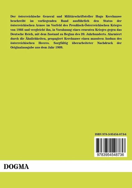 Der österreichische General und Militärschriftsteller Hugo Kerchnawe beschreibt im vorliegenden Band ausführlich den Status der österreichischen Armee im Vorfeld des Preußisch-Österreichischen Krieges von 1866 und vergleicht ihn, in Vorahnung eines erneuten Krieges gegen das Deutsche Reich, mit dem Zustand zu Beginn des 20. Jahrhunderts. Alarmiert durch die Ähnlichkeiten, propagiert Kerchnawe einen massiven Ausbau des österreichischen Heeres. Sorgfältig überarbeiteter Nachdruck der Originalausgabe aus dem Jahr 1909.