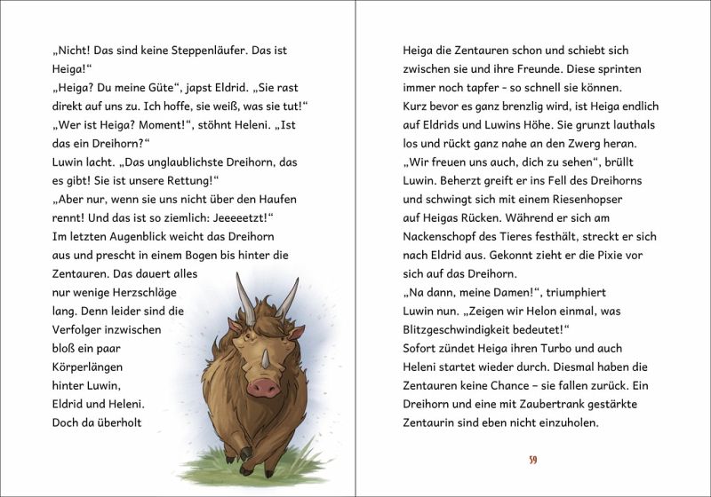 Die Geschichte liest sich spannend und fesselnd und man kommt sehr gut voran. Für die Altersgruppe ist sie passend umgesetzt und auf einfache Sätze und große Schrift wurde geachtet. Leicht lesbare Fantasy, die Spaß macht.