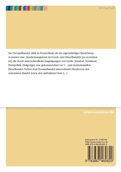 Diplomarbeit aus dem Jahr 1998 im Fachbereich BWL - Unternehmensgründung, Start-ups, Businesspläne, Note: 1.3, Philipps-Universität Marburg, Sprache: Deutsch, Abstract: Der Versandhandel zählt in Deutschland als ein eigenständiger Betriebstyp - worunter eine "Erscheinungsform des Groß- oder Einzelhandels [zu verstehen ist], die durch unterschiedliche Ausprägungen von Größe, Standort, Sortiment, Preispolitik, Zielgruppe usw. gekennzeichnet ist"1 - zum institutionellen Einzelhandel. Neben dem Versandhandel unterscheidet Berekoven den stationären Handel sowie den ambulanten bzw. halbstationären Handel als weitere Bestandteile des institutionellen Einzelhandels.2 Abbildung 1 visualisiert diese vorgestellte Einzelhandelssystematik.Es ist darauf hinzuweisen, daß der Versandhandel nicht in allen Ländern den Betriebstypen des Einzelhandels zugerechnet wird. Während in Europa die deutsche Sichtweise dominiert, wird der Versandhandel in den USA mit dem Versandprinzip gleichgesetzt.3Dieser Auffassung folgend, stellt der Versandhandel keinen eigenständigen Betriebstyp dar, er wird vielmehr als eine Absatzmethode verstanden, der sich Unternehmen unabhängig ihrer Wirtschaftsstufe bedienen können.4 In Deutschland werden die Betriebe, die gelegentlich das Versandprinzip anwenden, dem funktionellen Versandhandel zugeordnet.5 Spricht man dahingegen vom Versandhandel als Betriebstyp des Einzelhandels, so ist der institutionelle Versandhandel gemeint.6[...]1 Nieschlag/Dichtl/Hörschgen (1997), S. 1037.2 Vgl. Berekoven (1990), S. 29.3 Vgl. Eli/Laumer (1970), S. 13.4 Vgl. Eli/Laumer (1970), S. 13.5 Hierunter fallen Unternehmen, die nur in Ausnahmefällen Warenversendungen vornehmen. Sie werden nicht dem Betriebstyp Versandhandel zugeordnet und können als "Auch-Versender" bezeichnet wer den.Vgl. hierzu z. B. Meinig (1992), S. 1238; Krechting (1997), S. 9.6 Vgl. Krechting (1997), S. 9. Für den weiteren Gang der Untersuchung ist nur der institutionelle Versandhandel relevant.