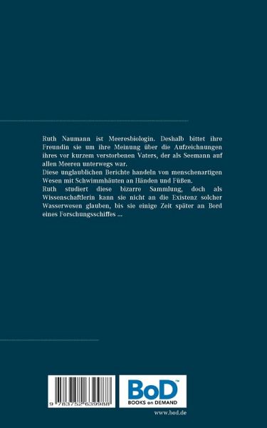 Ruth Naumann ist Meeresbiologin. Deshalb bittet ihre Freundin sie um ihre Meinung über die Aufzeichnungen ihres vor kurzem verstorbenen Vaters, der als Seemann auf allen Meeren unterwegs war. Diese unglaublichen Berichte handeln von menschenartigen Wesen mit Schwimmhäuten an Händen und Füßen. Ruth studiert diese bizarre Sammlung, doch als Wissenschaftlerin kann sie nicht an die Existenz solcher Wasserwesen glauben, bis sie einige Zeit später an Bord eines Forschungsschiffes ...