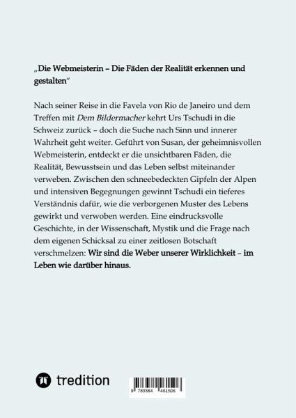 Nach seiner Reise in die Favela von Rio de Janeiro und der Begegnung mit Dem Bildermacher kehrt Urs Tschudi in die Schweiz zurück. Doch die Suche nach Sinn und innerer Wahrheit, die in den Straßen von Rio begann, ist noch nicht abgeschlossen. In der Stille der Alpen begegnet er Susan, der geheimnisvollen Webmeisterin, die ihm die unsichtbaren Fäden offenbart, die Realität, Bewusstsein und das Leben selbst miteinander verweben.Tschudi begreift, dass unser Leben nicht nur aus äußeren Ereignissen besteht, sondern aus einem unsichtbaren Muster, das wir selbst mitgestalten - bewusst oder unbewusst. Geführt von Susan lernt er, die verborgenen Zusammenhänge zu sehen: Die Realität, die wir erleben, ist kein Zufall, sondern ein Gewebe aus Gedanken, Absichten und Entscheidungen, das weit über das Sichtbare hinausreicht.Zwischen den schneebedeckten Gipfeln der Alpen und tiefgreifenden Begegnungen gewinnt Tschudi ein tieferes Verständnis dafür, wie die Fäden des Lebens gewirkt und verwoben werden. Die Reise, die einst in Rio begann, führt ihn nun zu der Erkenntnis, dass das Leben und der Tod nur zwei Seiten derselben Realität sind. Die modernen Wissenschaften - von der Quantenmechanik bis zu Burkhard Heims Dimensionen - bestätigen, was die Mystiker seit Jahrtausenden wissen: Alles ist miteinander verbunden."Die Webmeisterin" ist eine Geschichte über die Kunst, die eigene Realität bewusst zu gestalten, die Fäden des Lebens zu erkennen und mutig in das eigene Schicksal einzugreifen. Es ist ein Buch über die Kraft der Liebe, des Bewusstseins und die tiefe Weisheit, die in jedem von uns schlummert - eine Einladung, die unsichtbaren Muster des Lebens zu sehen und Teil des großen Gewebes zu werden.