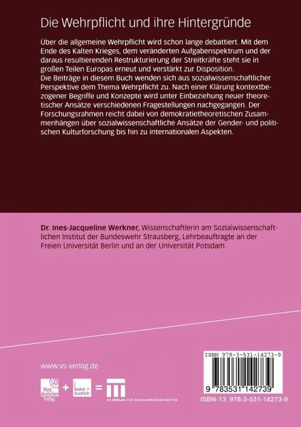 Die Beiträge in diesem Buch wenden sich aus sozialwissenschaftlicher Perspektive dem Thema Wehrpflicht zu. Nach einer Klärung kontextbezogener Begriffe und Konzepte wird unter Einbeziehung neuer theoretischer Ansätze verschiedenen Fragestellungen nachgegangen. Der Forschungsrahmen reicht dabei von demokratietheoretischen Zusammenhängen über sozialwissenschaftliche Ansätze der Gender- und politischen Kulturforschung bis hin zu internationalen Aspekten.