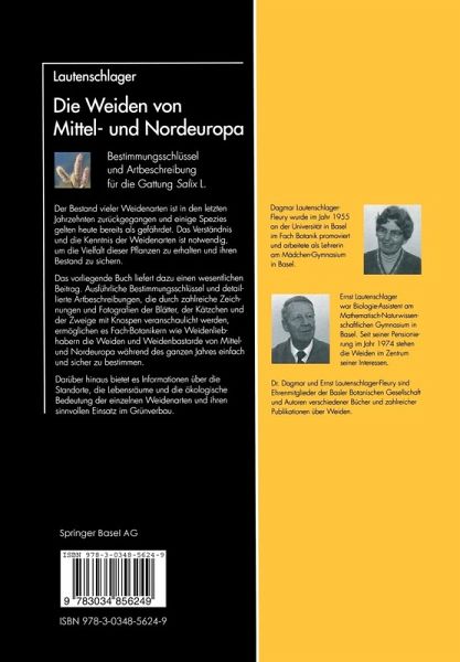 Allgemeines.- Allgemeines.- Mitteleuropäische Weidengewächse.- Systematik.- Bestimmungstabellen.- Spalierweiden.- Diagnosen der Spalierweiden (Teppichweiden).- Aufrechte Sträucher und Bäume.- Diagnosen der aufrechten Sträucher und Bäume.- Aus fremden Kontinenten eingeführte Weiden.- Bestimmung von Bastarden.- Zweige und Knospen im Winter.- Die Weidenflora in Schwedisch-Lappland.- Bestimmungsschlüssel für die Weiden in Schwedisch-Lappland.- Diagnosen der Weiden in Schwedisch-Lappland.