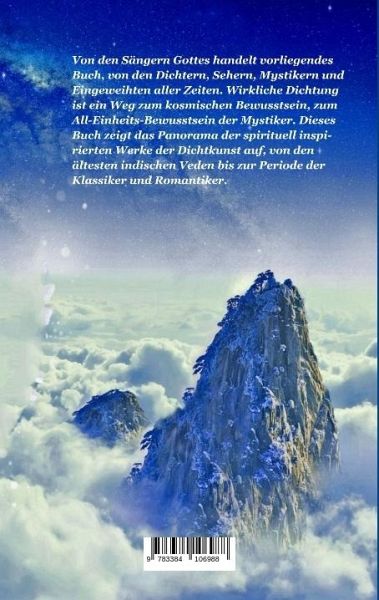 Von den Sängern Gottes handelt vorliegendes Buch ¿ von den Dichtern, Sehern, Mystikern und Eingeweihten aller Zeiten. Wirkliche Dichtung ist ein Weg zum kosmischen Bewusstsein, zum All-Einheits-Bewusstsein der Mystiker. Der Dichter muss das ganze Welten-All in sein Inneres hineinnehmen, muss das Schicksal der ganzen Welt mittragen, mit allen Wesen mitfühlen, um den vielfältigen Stimmen des Seins Ausdruck zu verleihen. Dieses Buch zeigt das große Panorama der spirituell inspirierten Werke der Dichtkunst, von den ältesten indischen Veden bis zur Periode der Romantiker und Klassiker.