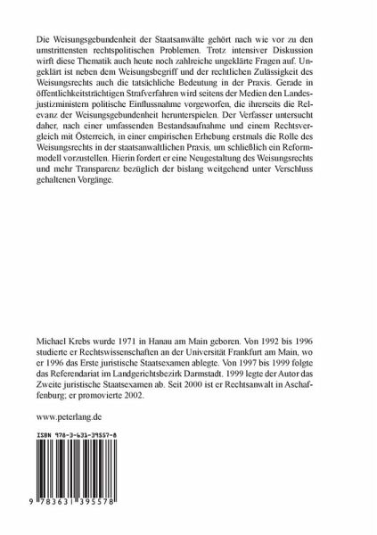 Die Weisungsgebundenheit der Staatsanwälte gehört nach wie vor zu den umstrittensten rechtspolitischen Problemen. Trotz intensiver Diskussion wirft diese Thematik auch heute noch zahlreiche ungeklärte Fragen auf. Ungeklärt ist neben dem Weisungsbegriff und der rechtlichen Zulässigkeit des Weisungsrechts auch die tatsächliche Bedeutung in der Praxis. Gerade in öffentlichkeitsträchtigen Strafverfahren wird seitens der Medien den Landesjustizministern politische Einflussnahme vorgeworfen, die ihrerseits die Relevanz der Weisungsgebundenheit herunterspielen. Der Verfasser untersucht daher, nach einer umfassenden Bestandsaufnahme und einem Rechtsvergleich mit Österreich, in einer empirischen Erhebung erstmals die Rolle des Weisungsrechts in der staatsanwaltlichen Praxis , um schließlich ein Reformmodell vorzustellen. Hierin fordert er eine Neugestaltung des Weisungsrechts und mehr Transparenz bezüglich der bislang weitgehend unter Verschluss gehaltenen Vorgänge.