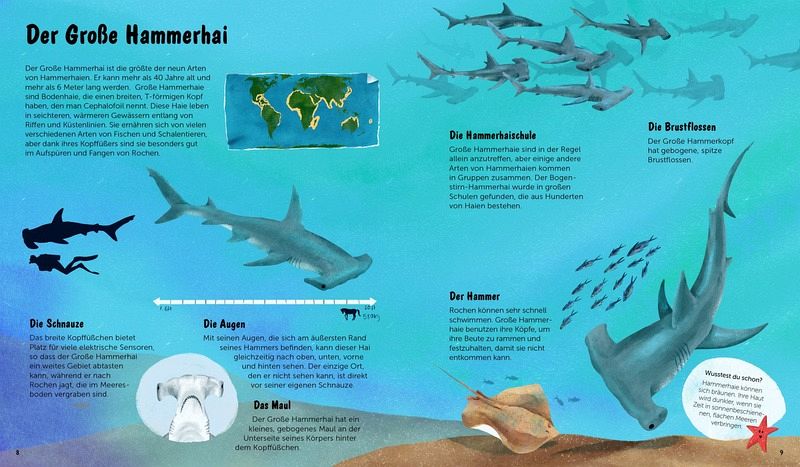 In diesem Buch lernst du viele verschiedene Haiarten kennen – ihren Lebensraum, ihr ganz eigenes Jagdverhalten, ihren besonderen Körperbau und vieles mehr.