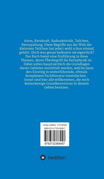 Atom, Kernkraft, Radioaktivität, Teilchen, Kernspaltung: Diese Begriffe aus der Welt der kleinsten Teilchen hat jede/r wohl schon einmal gehört. Doch was genau bedeuten sie eigentlich? Das Buch bietet eine Einführung in diese Themen, deren Überbegriff die Kernphysik ist. Dabei sollen hauptsächlich die Grundlagen dieses Gebietes vermittelt werden, welche dann den Einstieg in weiterführende, oftmals komplexere Fachliteratur vereinfachen. Somit sind hier alle willkommen, die noch keine/wenige Grundkenntnisse in diesem Gebiet besitzen.