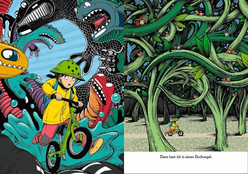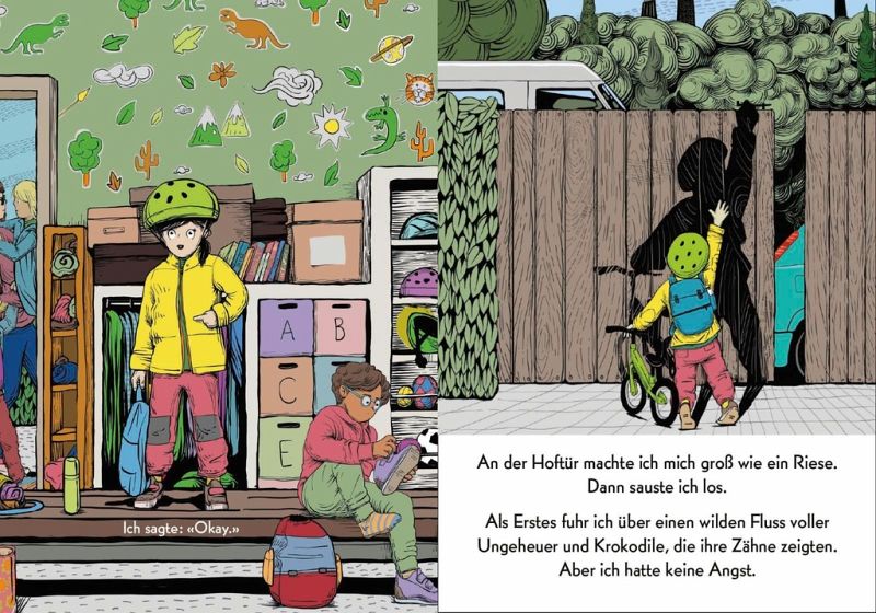 Welche Eltern kennen nicht den großen Schreck, wenn das Kind auf einmal verschwunden ist? Doch aus Kinderaugen sieht die Welt ganz anders aus. Da wird aus der befahrenen Straße ein wilder Fluss, aus dem Park ein belebter Dschungel, aus der Baustelle ein hohes Gebirge, aus dem öden Platz eine sengende Wüste und aus dem Zuhause ein wunderschönes Schloss.
