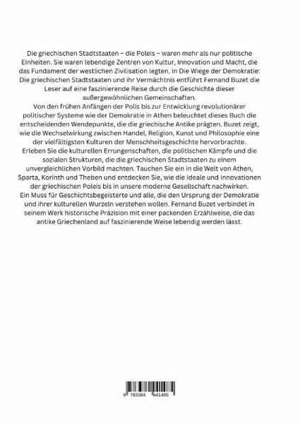 Die griechischen Stadtstaaten - die Poleis - waren mehr als nur politische Einheiten. Sie waren lebendige Zentren von Kultur, Innovation und Macht, die das Fundament der westlichen Zivilisation legten. In Die Wiege der Demokratie: Die griechischen Stadtstaaten und ihr Vermächtnis entführt Fernand Buzet die Leser auf eine faszinierende Reise durch die Geschichte dieser außergewöhnlichen Gemeinschaften.Von den frühen Anfängen der Polis bis zur Entwicklung revolutionärer politischer Systeme wie der Demokratie in Athen beleuchtet dieses Buch die entscheidenden Wendepunkte, die die griechische…mehr