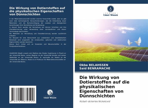 In der Materialwissenschaft wurden enorme Fortschritte erzielt, aber es gibt noch viele technologische Herausforderungen, wie die Entwicklung neuer Materialien und die Berücksichtigung der sozialen und ökologischen Auswirkungen ihrer Herstellung und Verwendung.In diesem Buch werden die Herstellung von dünnen Schichten und ihre Charakterisierung unter Verwendung einer verständlichen und klaren Terminologie beschrieben.Die Methoden zur Herstellung und Charakterisierung werden ausführlich erläutert.Ein Beispiel für eine Dünnschicht aus undotiertem und kobaltdotiertem Nickeloxid wird vorgestellt; die strukturellen, optischen und elektrischen Eigenschaften werden bestimmt.Dieses Buch richtet sich an Studenten und Wissenschaftler in der Postgraduiertenphase.