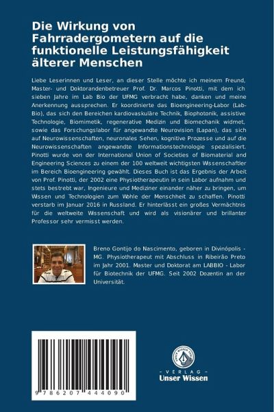Liebe Leserinnen und Leser, an dieser Stelle möchte ich meinem Freund, Master- und Doktorandenbetreuer Prof. Dr. Marcos Pinotti, mit dem ich sieben Jahre im Lab Bio der UFMG verbracht habe, danken und meine Anerkennung aussprechen. Er koordinierte das Bioengineering-Labor (Lab-Bio), das sich den Bereichen kardiovaskuläre Technik, Biophotonik, assistive Technologie, Biomimetik, regenerative Medizin und Biomechanik widmet, sowie das Forschungslabor für angewandte Neurovision (Lapan), das sich auf Neurowissenschaften, neuronales Sehen, kognitive Prozesse und auf die Neurowissenschaften angewandte Informationstechnologie spezialisiert. Pinotti wurde von der International Union of Societies of Biomaterial and Engineering Sciences zu einem der 100 weltweit wichtigsten Wissenschaftler im Bereich Bioengineering gewählt. Dieses Buch ist das Ergebnis der Arbeit von Prof. Pinotti, der 2002 eine Physiotherapeutin in sein Labor aufnahm und stets bestrebt war, Ingenieure und Mediziner einandernäher zu bringen, um Wissen und Technologien zum Wohle der Menschheit zu schaffen. Pinotti verstarb im Januar 2016 in Russland. Er hinterlässt ein großes Vermächtnis für die weltweite Wissenschaft und wird als visionärer und brillanter Professor sehr vermisst werden.