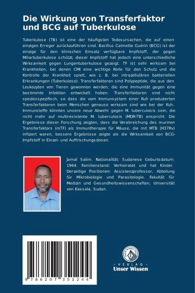 Tuberkulose (TB) ist eine der häufigsten Todesursachen, die auf einen einzigen Erreger zurückzuführen sind. Bacillus Calmette Guérin (BCG) ist der einzige für den klinischen Einsatz verfügbare Impfstoff, der gegen Miliartuberkulose schützt; dieser Impfstoff hat jedoch eine unterschiedliche Wirksamkeit gegen Lungentuberkulose gezeigt. TF ist sehr wirksam bei Krankheiten, bei denen CMI eine wichtige Rolle für den Schutz und die Kontrolle der Krankheit spielt, wie z. B. bei intrazellulären bakteriellen Erkrankungen (Tuberkulose). Transferfaktoren sind Polypeptide, die aus den Leukozyten von Tieren gewonnen werden, die eine Immunität gegen eine bestimmte Infektion entwickelt haben. Transferfaktoren sind nicht speziesspezifisch, so dass die vom Immunsystem einer Kuh produzierten Transferfaktoren beim Menschen genauso wirksam sind wie bei der Kuh. Immunstoffe könnten unsere neue Abwehr gegen M. tuberculosis sein, die nicht mehr auf multiresistente M. tuberculosis (MDR-TB) anspricht. Die Ergebnisse dieser Forschung zeigten, dass die Verabreichung des murinen Transferfaktors (mTF) als Immuntherapie für Mäuse, die mit MTB (H37Rv) infiziert waren, bessere Ergebnisse zeigte als die Wirksamkeit von BCG-Impfstoff in Einzel- und Auffrischungsdosen.