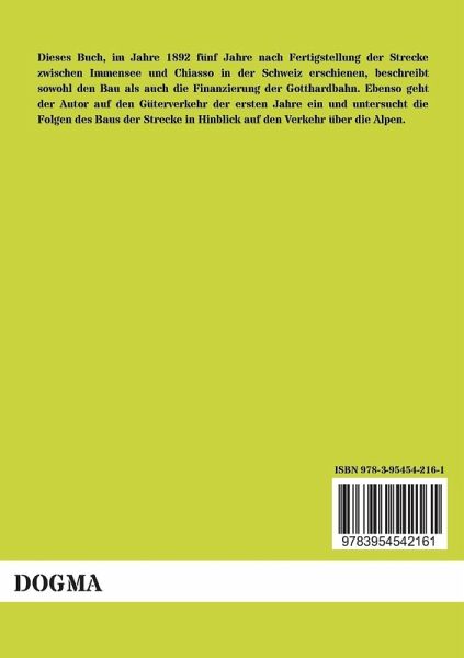 Dieses Buch, im Jahre 1892 fünf Jahre nach Fertigstellung der Strecke zwischen Immensee und Chiasso in der Schweiz erschienen, beschreibt sowohl den Bau als auch die Finanzierung der Gotthardbahn. Ebenso geht der Autor auf den Güterverkehr der ersten Jahre ein und untersucht die Folgen des Baus der Strecke in Hinblick auf den Verkehr über die Alpen.