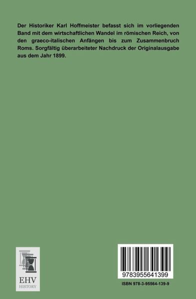 Der Historiker Karl Hoffmeister befasst sich im vorliegenden Band mit dem wirtschaftlichen Wandel im römischen Reich, von den graeco-italischen Anfängen bis zum Zusammenbruch Roms. Sorgfältig überarbeiteter Nachdruck der Originalausgabe aus dem Jahr 1899.