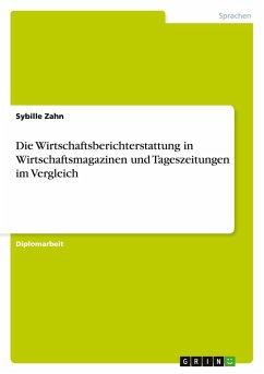 Diplomarbeit aus dem Jahr 2003 im Fachbereich Sprachwissenschaft / Sprachforschung (fachübergreifend), Note: 1,7, Johannes Gutenberg-Universität Mainz (Institut fuer Angewandte Sprach- und Kulturwissenschaft), Sprache: Deutsch, Abstract: Diese Diplomarbeit beschäftigt sich mit dem Wirtschaftsjournalismus. Dabei geht es sowohl um das Berufsfeld des Wirtschaftsjournalisten, seine Pflichten und Aufgaben als auch um die Ergebnisse wirtschaftsjournalistischer Arbeit - Artikel und Beiträge in Tageszeitungen und Magazinen. Beschäftigt man sich mit Wirtschaftsjournalismus ist es zunächst einmal wichtig zu definieren, was darunter im Allgemeinen und auch im Speziellen in dieser Arbeit verstanden wird. Dazu soll das erste Kapitel dienen. Das zweite Kapitel gibt wichtige Informationen über die Zielgruppe der Wirtschaftsjournalisten und stellt Veränderungen in den letzten Jahrzehnten heraus.Es ist von großer Bedeutung, auch auf die zeitliche Entwicklung dieses Berufsfeldes und seiner Rezeption einzugehen. Dies zeigt auf, dass Wirtschaftsjournalismus nicht statisch oder festgelegt ist, sondern sich immer bestimmten Tendenzen entsprechend bewegt und weiterentwickelt. Darauf wird insbesondere im vierten Kapitel eingegangen.Nicht zu vernachlässigen ist an dieser Stelle, dass Veränderungen, Entwicklungen und Neuerungen nicht immer positiver Art sein müssen. Daher findet auch Kritik an diesen Punkten in der vorliegenden Arbeit Erwähnung. Kritik ist mitunter subjektiv, sobald sie aber den Eindruck mehrerer Menschen und Gruppen widerspiegelt, sollte sie jedoch ernst genommen und eingehender untersucht werden.Die bereits erwähnten Punkte stellen eine Wissensgrundlage dar, die nötig ist, um die nächsten Kapitel verstehen und bewerten zu können. Es sollen nun die verschiedenen Merkmale von Wirtschaftsberichterstattung dargestellt werden. Dabei wurden Wirtschaftsmedien unter drei Gesichtspunkten analysiert: Inhalt, Textlinguistik und Lexik. Diese Betrachtung ist ohne Wissen überWirtschaftsjournalismus allgemein nur wenig aussagekräftig oder gar nicht möglich.