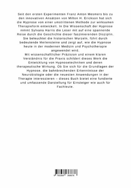 Seit den ersten Experimenten Franz Anton Mesmers bis zu den innovativen Ansätzen von Milton H. Erickson hat sich die Hypnose von einer umstrittenen Methode zur wirksamen Therapieform entwickelt. In Die Wissenschaft der Hypnose nimmt Sylvana Harris die Leser mit auf eine spannende Reise durch die Geschichte dieser faszinierenden Disziplin. Sie beleuchtet die historischen Wurzeln, führt durch bedeutende Meilensteine und zeigt auf, wie die Hypnose heute in der modernen Medizin und Psychotherapie angewendet wird.Mit wissenschaftlicher Präzision und einem klaren Verständnis für die Praxis schildert dieses Werk die Entwicklung von Hypnosetechniken und deren therapeutische Wirkung. Ob Sie sich für die Grundlagen der Hypnose, die bahnbrechenden Erkenntnisse der Neurobiologie oder die neuesten Anwendungen in der Therapie interessieren - dieses Buch bietet eine fundierte und umfassende Darstellung für Einsteiger wie auch für Fachleute.