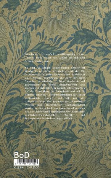 "Geschichte ist einfach scheißlangweilig, Alter. Tausend blöde Namen und Zahlen, die sich kein Schwein merken kann."So oder so ähnlich kommentieren Schüler oft Geschichte, wie sie in der Schule gelehrt wird. Die "wundersame Geschichte der Menschheit" ist dagegen in einer Sprache geschrieben, die auch für junge Menschen verständlich ist und will kein brottrockener Ballast für ein überfordertes menschliches Gehirn sein. Diese Geschichte soll Jugendlichen und geistig Junggebliebenen Spaß machen und wirft daher ein ironisch-satirischen Blick auf die Entwicklung der Menschheit und auf die offizielle, einseitige Geschichtsdarstellung, die Fakten geflissentlich ignoriert und oft nur der Aufrechterhaltung des gegenwärtigen Wirtschaftssystems dient. Hochtrabende Geschichtsmythen werden in diesem Buch von ihrem Sockel gestoßen und der Lächerlichkeit preisgegeben, der Unsinn vieler geschichtswissenschaftlicher Begriffe und Behauptungen drastisch vor Augen geführt.