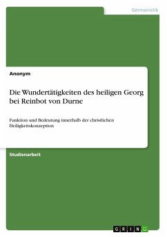 Studienarbeit aus dem Jahr 2020 im Fachbereich Germanistik - Ältere Deutsche Literatur, Mediävistik, Note: 1,0, Technische Universität Dresden (Institut für Germanistik), Veranstaltung: Aventiuren des Heils und heilige Aventiuren, Sprache: Deutsch, Abstract: Die Fähigkeit, Wunder bewirken zu können, spielt in der Heiligkeitskonzeption des Christentums eine wichtige Rolle. Im Mittelalter glaubten die Menschen besonders stark an Wunder und interpretierten unerklärliche Begebenheiten als Zeichen Gottes. In diesem Zuge wurden auch Heilige und Märtyrer in höchster Form idealisiert, was sich letztendlich in einer kultischen Verehrung niederschlug. Diese Heiligen verfügten häufig auch über supranaturale Fähigkeiten und ließen außergewöhnliche Wunder geschehen, weshalb sie von der Bevölkerung zu Gottesmenschen erhoben wurden. Neben vielen anderen Charakteren stellt besonders der heilige Georg eine legendäre frühchristliche Persönlichkeit dar. Noch heute wird jährlich am Georgstag an ihn erinnert. Daneben existieren auch zahlreiche Erzählungen und Legenden, die ihn als Märtyrer und Drachentöter präsentieren. Auch Reinbot von Durne widmete sich der Lebensgeschichte des Heiligen und dokumentierte sie in seinem Georgsroman. Das Werk entstand zwischen 1235 und 1253 im Auftrag des Herzogs Otto II. von Bayern und wurde von Reinbot im höfischen Stil verfasst. In der vorliegenden Arbeit soll der heilige Georg als Wundertäter genauer in den Fokus geraten. Die Grundlage hierfür bildet Reinbots Erzählung. Im Vordergrund steht dabei die Frage, in welcher Verbindung die Wunderhandlungen zu Gott stehen und welche Funktionen sie erfüllen.