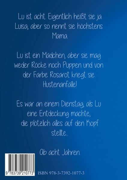 Lu ist acht. Eigentlich heißt sie ja Luisa. Aber so nennt sie höchstens Mama. Lu ist ein Mädchen, aber sie mag keine Mädchenkleider und von der Farbe Rosarot kriegt sie Hustenanfälle. Dafür mag Lu Liam.Es war an einem Dienstag, als Lu jene Entdeckung machte, die plötzlich alles ganz und gar veränderte und ihr Leben wunderbar auf den Kopf stellte. Eine magische Geschichte für Kinder ab acht Jahren.