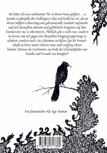 Als hätte sich eine unbekannte Tür in ihrem Haus geöffnet ... so kommt es den Zwillingen Colin und Kathrine vor, als an ihrem zwölften Geburtstag eine geheimnisvolle Sanduhr auftaucht und sich daraufhin seltsame und gefährliche Ereignisse auf dem Familiensitz nur so überstürzen. Plötzlich gilt es nicht nur, zaubern zu lernen, um sich gegen eine skrupellose Magiergruppierung zu schützen, sondern auch, ein Geheimnis zu lüften, das die Freundschaft zu ihren neuen Lehrern Isaac und Geoffrey schwer belastet. Können die Geschwister am Ende die Schicksalsfäden um Familie und Freunde neu knüpfen? Fantastischer All-Age-Roman mit einem dunklen Familiengeheimnis und der Frage, ob man den Lauf der Zeit verändern kann.
