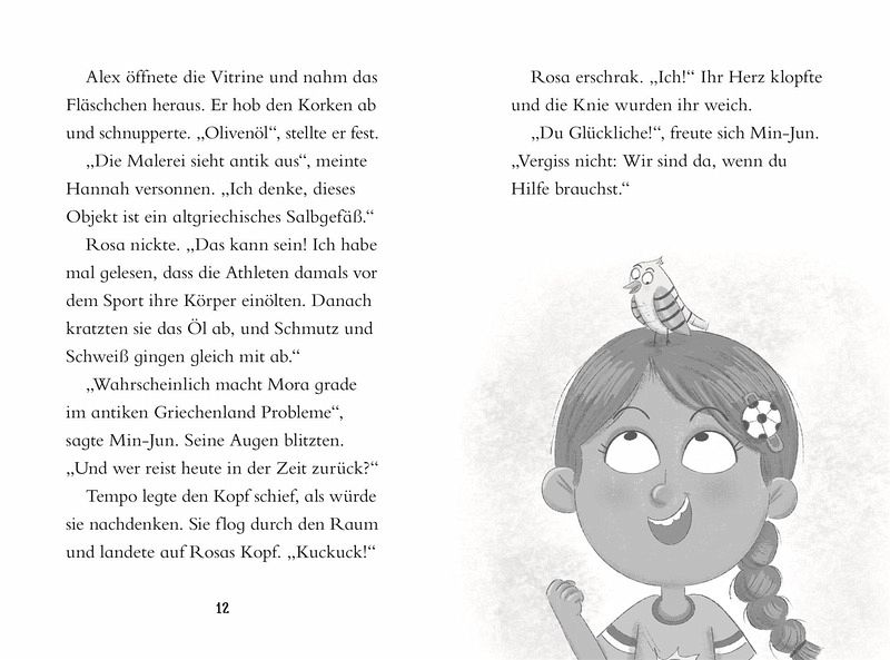 In dieser neuen Action-geladenen Kinderreihe trifft Geschichte auf Fantasy. Mit coolen Zeitreisen werden historische Schauplätze hautnah erlebbar: Leser_innen folgen den cleveren Charakteren in vergangene Zeiten, als ob sie selbst durch die Antike streifen oder dem ersten Motorflug der Welt zuschauen würden. Dazu sorgen die zahlreichen Schwarz-Weiß-Illustrationen für Abwechslung und lockern die Geschichte auf, sodass jedes Kind Spaß am Lesen hat. Die Repräsentation verschiedener Charaktere aus aller Welt schafft zudem ein hohes Identifikationspotenzial bei den Leseanfänger_innen.