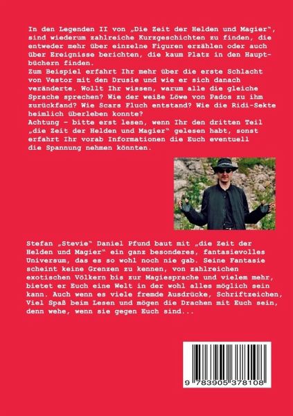 In den Legenden II sind wiederum zahlreiche Kurzgeschichten zu finden, die entweder mehr über einzelne Figuren erzählen oder auch über Ereignisse berichten, die kaum Platz in den Hauptbüchern finden. Zum Beispiel erfahrt Ihr mehr über die erste Schlacht von Vestor mit den Drusie und wie er sich danach veränderte. Wollt Ihr wissen, warum alle die gleiche Sprache sprechen? Wie der weiße Löwe von Pados zu ihm zurückfand? Wie Scars Fluch entstand? Wie die Ridi-Sekte heimlich überleben konnte? Achtung, bitte erst lesen, wenn Ihr den dritten Teil von "die Zeit der Helden und Magier" gelesen habt, sonst erfahrt Ihr vorab Informationen die Euch eventuell die Spannung nehmen könnten.