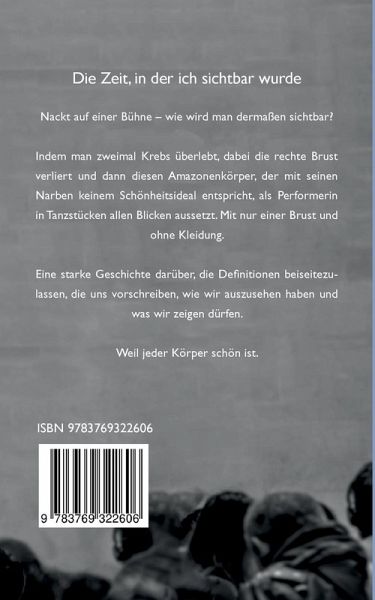 Die Zeit, in der ich sichtbar wurde Nackt auf einer Bühne - wie wird man derartig sichtbar? Indem man zweimal Krebs überlebt, dabei die rechte Brust verliert und dann diesen Amazonenkörper, der mit seinen Narben keinem Schönheitsideal entspricht, als Performerin in Tanzstücken allen Blicken aussetzt. Mit nur einer Brust und ohne Kleidung. Eine starke Geschichte darüber, die Definitionen beiseitezulassen, die uns vorschreiben, wie wir auszusehen haben und was wir zeigen dürfen. Weil jeder Körper schön ist.