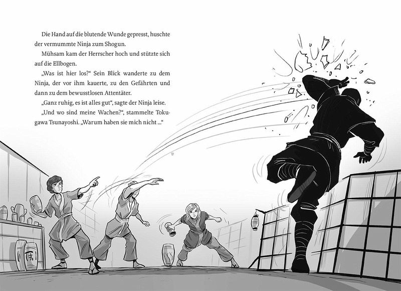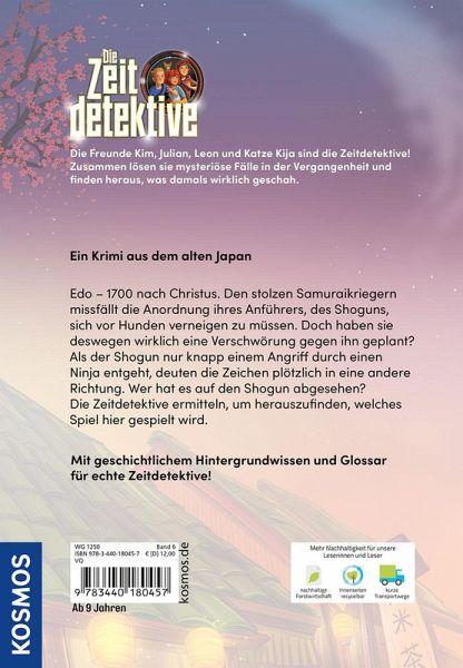 Ein aufregender Kriminalfall mit umfangreichen Sachinfos. Eintauchen und mit den Zeitdetektiven Geschichte hautnah erleben.Edo, 1700 nach Christus: Der mächtige Shogun entgeht in der faszinierenden Stadt Edo nur knapp dem Wurfstern eines Ninjas. Wer ist der geheimnisvolle Angreifer? Kim, Julian, Leon und die Katze Kija machen sich auf die Suche nach dem gerissenen Täter, der die Kunst der Verkleidung perfekt beherrscht. Dabei geraten die Gefährten an eine seltsame Schauspielergruppe und ebenso machtbewusste wie rachsüchtige Samurais und Ninjas. Ein actionreicher, aufwendig illustrierter Kriminalfall mit Experten-Sachinfos und einem Glossar.