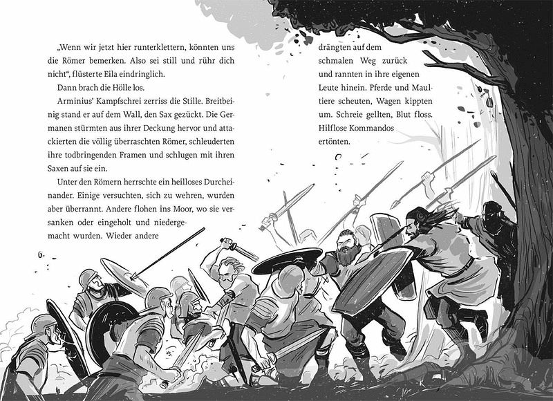 Ein aufregender Kriminalfall mit umfangreichen Sachinfos. Eintauchen und mit den Zeitdetektiven Geschichte hautnah erleben.Wie gelang es dem Germanen Arminius, den römischen Statthalter Varus zu besiegen? Um das herauszufinden, reisen die Zeitdetektive Kim, Julian, Leon und die Katze Kija ins Jahr 9 n. Chr. Ihr Ziel: der Teutoburger Wald. Sie sind mittendrin, als die Germanen eine Falle für die Römer vorbereiten. Doch nicht alle Germanen sind auf Arminius` Seite. Wer ist der Verräter?Was finden die Zeitdetektive über die Varusschlacht heraus? Eine spannende Krimigeschichte in 16 Kapiteln. Orte, Menschen und Begebenheiten erwachen mit schwarz-weißen Zeichnungen zum Leben. Mit Experten-Sachinformationen und einem umfangreichen Glossar.