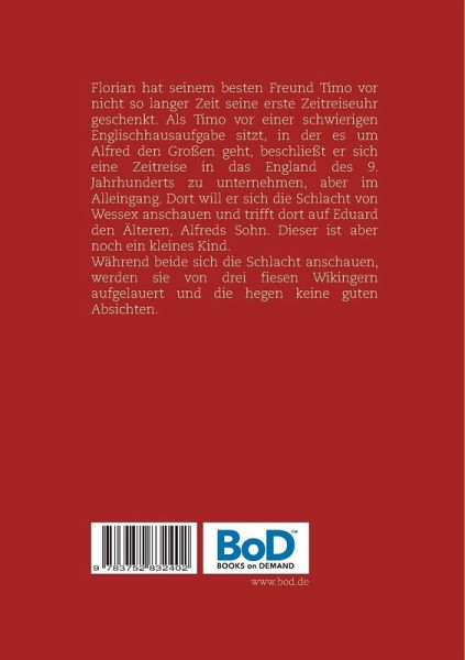 Florian hat seinem besten Freund Timo vor nicht so langer Zeit seine erste Zeitreiseuhr geschenkt. Als Timo vor einer schwierigen Englischhausaufgabe sitzt, in der es um Alfred den Großen geht, beschließt er, eine Zeitreise in das England des 9. Jahrhunderts zu unternehmen, aber im Alleingang. Dort will er sich die Schlacht von Wessex anschauen und trifft dort auf Eduard den Älteren, Alfreds Sohn. Dieser ist aber noch ein kleines Kind. Während beide sich die Schlacht anschauen, werden sie von drei fiesen Wikingern aufgelauert, und die hegen keine guten Absichten.