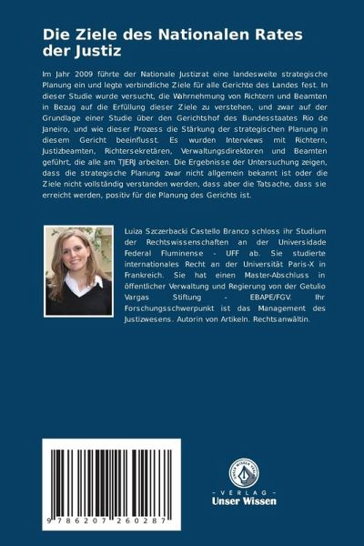 Im Jahr 2009 führte der Nationale Justizrat eine landesweite strategische Planung ein und legte verbindliche Ziele für alle Gerichte des Landes fest. In dieser Studie wurde versucht, die Wahrnehmung von Richtern und Beamten in Bezug auf die Erfüllung dieser Ziele zu verstehen, und zwar auf der Grundlage einer Studie über den Gerichtshof des Bundesstaates Rio de Janeiro, und wie dieser Prozess die Stärkung der strategischen Planung in diesem Gericht beeinflusst. Es wurden Interviews mit Richtern, Justizbeamten, Richtersekretären, Verwaltungsdirektoren und Beamten geführt, die alle am TJERJ arbeiten. Die Ergebnisse der Untersuchung zeigen, dass die strategische Planung zwar nicht allgemein bekannt ist oder die Ziele nicht vollständig verstanden werden, dass aber die Tatsache, dass sie erreicht werden, positiv für die Planung des Gerichts ist.