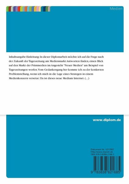 Inhaltsangabe:Einleitung: In dieser Diplomarbeit möchte ich auf die Frage nach der Zukunft der Tageszeitung am Medienmarkt Antworten finden, einen Blick auf den Markt der Printmedien im Angesicht "Neuer Medien" am Beispiel von Tageszeitungen werfen. Vom Gedankengang her komme ich zu der konkreten Problemstellung, wenn ich mich in die Lage eines Strategen in einem Medienkonzern versetze: Da ist dieses neue Medium Internet. Wie reagiere ich mit meiner (meinen) Tageszeitung(en) auf die Entwicklung? Gerade den Verlegern, Herausgebern und Geschäftsführern in den Verlagen mangelt es jedoch oft an der nötigen Zeit, sich ausreichend Gedanken über langfristige Entwicklungen zu machen; zu sehr sind sie mit den alltäglichen Problemen, der ohnedies schon turbulenten Umwelt einer Tageszeitung beschäftigt. Es gilt, täglich eine (alte) Verpackung mit einem (neuen) Produkt zu füllen. Indizien für eine mögliche Entwicklung zu sammeln und am Ende dieser Arbeit einige fundierte Aussagen auf diese Fragen geben zu können, das sind die Ziele der folgenden Seiten. Solche Indizien lassen sich in der Umfrage im Mittelteil meiner Arbeit finden und sollen im Hauptteil in den Kapiteln "Meinungen" und "Strategische Überlegungen" einfließen. Dabei habe ich nur wenige Werke in der traditionellen Literatur gefunden, dafür vermehrt Meinungen aus der Tagespresse verwendet. Inhaltsverzeichnis:Inhaltsverzeichnis: VORWORT4 EINLEITUNG5 AUSGANGSPOSITION UND PROBLEMSTELLUNG7 AUSGANGSPOSITION: INFORMATIONSGESELLSCHAFT ODER MEDIENGESELLSCHAFT?7 PROBLEMSTELLUNG11 BEGRIFFSDEFINITIONEN12 Neue Medien12 Auflage12 Reichweite12 Hits13 Visits13 Page-Impressions (=PageViews)13 EMPIRISCHER TEIL14 ÜBERLEGUNGEN ZUM EMPIRISCHEN TEIL14 EXKURS: DIE BEFRAGUNG17 DIESER FRAGEBOGEN18 demographisch-personale Fragen (Fragen 1 bis 6)18 Fragen zum aktuellen Leseverhalten (Fragen 7 bis 12)18 Fragen zur Prognose des Leseverhaltens (Fragen 13 und 14)18 Die drei Messniveaus19 DIE STICHPROBE20 DIE HYPOTHESEN21 Hypothese 121 Hypothese 221 Hypothese 322 ABLAUF DER BEFRAGUNG22 ERGEBNISSE: GRAFIKEN UND INTERPRETATIONEN23 ZUSAMMENFASSUNG DER ERGEBNISSE DES EMPIRISCHEN TEILES57 HAUPTTEIL59 IN KURZEN AUSZÜGEN: DIE GESCHICHTE DER ZEITUNG59 IN KURZEN AUSZÜGEN: DIE GESCHICHTE DES INTERNETS60 WIRTSCHAFTSDATEN VON ZEITUNGEN62 DISKUSSION: KANN PROGNOSE WISSENSCHAFTLICH VORGENOMMEN WERDEN?65 PROGNOSEMODELLE67 MEINUNGEN VON EXPERTEN68 Sammlung von [¿]