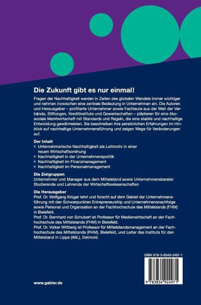 Fragen der Nachhaltigkeit werden in Zeiten des globalen Wandels immer wichtiger und nehmen inzwischen eine zentrale Bedeutung in Unternehmen ein. Die Autoren und Herausgeber - profilierte Unternehmer sowie Fachleute aus der Welt der Verbände, Stiftungen, Kreditinstitute und Gewerkschaften - plädieren für eine ökosoziale Marktwirtschaft mit Standards und Regeln, die eine stabile und nachhaltige Entwicklung gewährleisten. Sie beschreiben ihre persönlichen Erfahrungen im Hinblick auf nachhaltige Unternehmensführung und zeigen Wege für Veränderungen auf.