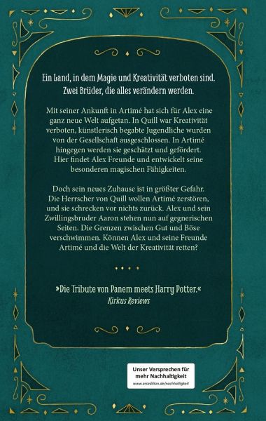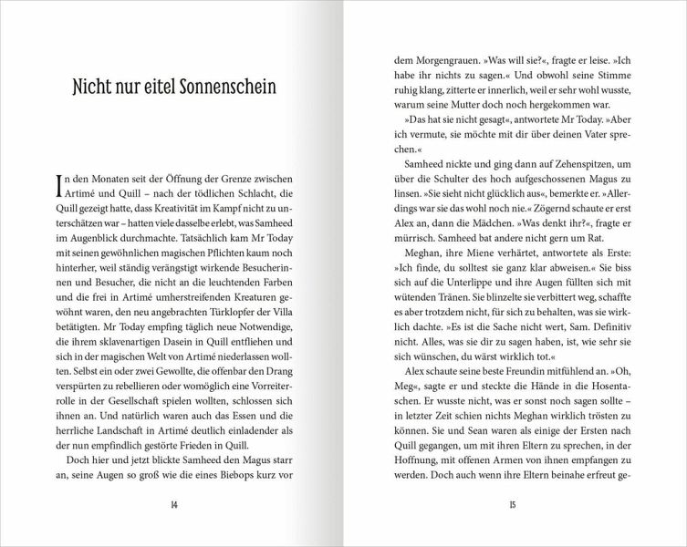 Mit seiner Ankunft in Artimé hat sich für Alex eine ganz neue Welt aufgetan. In Quill war Kreativität verboten, und künstlerisch begabte Jugendliche wurden von der Gesellschaft ausgeschlossen. In Artimé hingegen werden sie geschätzt, gefördert und erhalten eine künstlerische Ausbildung. Hier findet Alex Freunde und entwickelt seine besonderen magischen Fähigkeiten.
