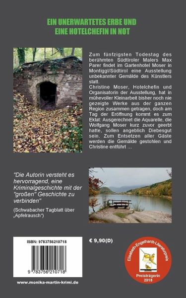Zum fünfzigsten Todestag des berühmten Südtiroler Malers Max Parer findet im Gartenhotel Moser in Montiggl/Südtirol eine Ausstellung unbekannter Gemälde des Künstlers statt. Christine Moser, Hotelchefin und Organisatorin der Ausstellung, hat in mühevoller Kleinarbeit bisher noch nie gezeigte Werke aus der ganzen Region zusammengetragen, doch am Tag der Eröffnung kommt es zum Eklat: Ausgerechnet die Aquarelle, die Wolfgang Moser kurz zuvor geerbt hatte, sollen angeblich Diebesgut sein. Zum Entsetzen aller Gäste werden die Gemälde gestohlen und Christine entführt ...
