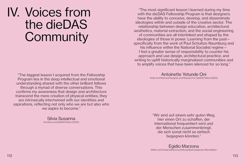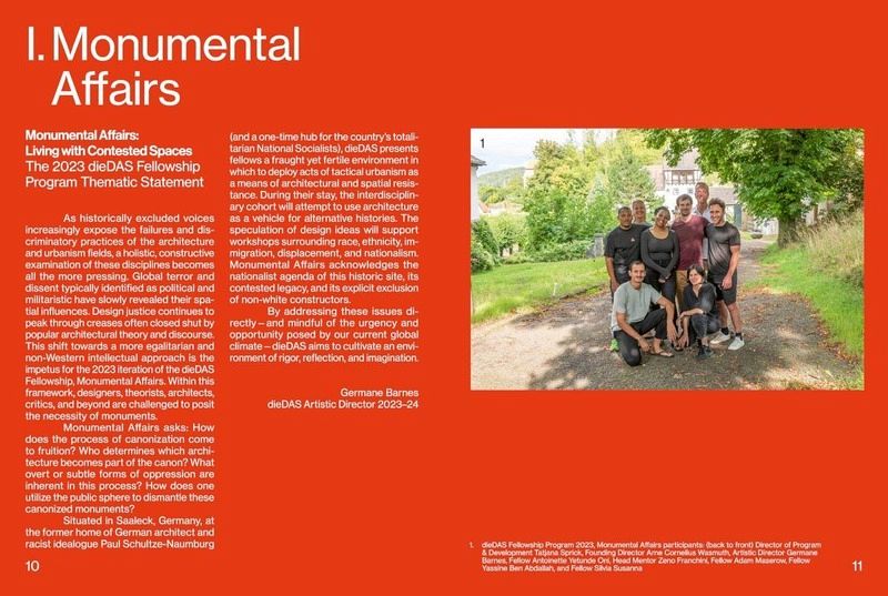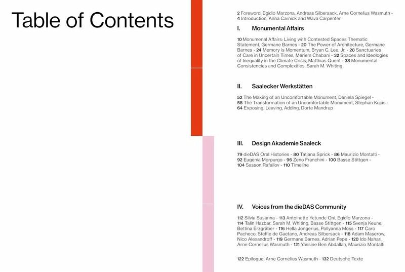 Mit dieDASdocs: Monumental Affairs_Living with ContestedSpaces liegt die erste Publikation der dieDAS -Design Akademie Saaleck vor. Dieser Auftaktbandderneuen Reihe präsentiert die Ergebnisse des dieDASFellowship-Zyklus 2023 und des anschließendenSymposiumsdieDAS walk + talk unter der künstlerischenLeitung des renommierten amerikanischenArchitekten Germane Barnes. Dabei werden dieKomplexität von Denkmalen auch im internationalenKontext hinterfragt und drängende Themen wie Rassismus,Nationalismus, soziale Ungleichheit und Klimaungerechtigkeitverhandelt. Darüber hinaus erzähltdie Publikation die bisherige Geschichte der dieDASanhand von Essays, Interviews und Statements, in denendie Vision und der kollaborative Ansatz der gemeinnützigenStiftung skizziert werden - und stellt die zahlreichenDesigner_innen, Architekt_innen, Kritiker_innen,Aktivist_innen und Unterstützer_innen vor, die seit derGründung eine Rolle bei ihrer Entwicklung spielen.