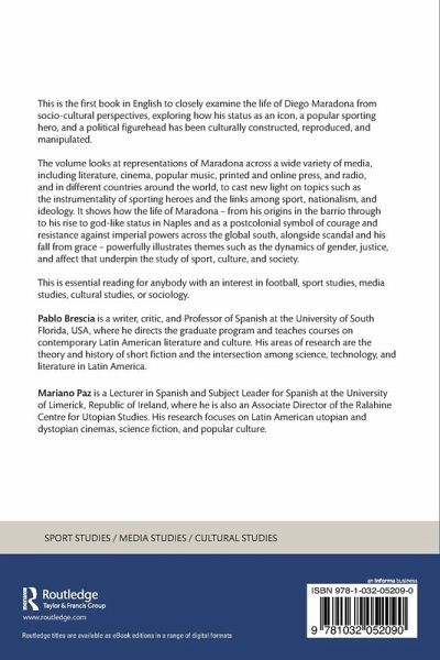 The volume looks at representations of Maradona across a wide variety of media, including literature, cinema, popular music, printed and online press, and radio, and in different countries around the world, to cast new light on topics such as the instrumentality of sporting heroes and the links among sport, nationalism, and ideology. It shows how the life of Maradona - from his origins in the barrio through to his rise to god-like status in Naples and as a postcolonial symbol of courage and resistance against imperial powers across the global south, alongside scandal and his fall from grace - powerfully illustrates themes such as the dynamics of gender, justice, and affect that underpin the study of sport, culture, and society.