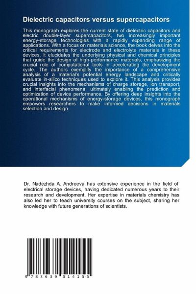 This monograph explores the current state of dielectric capacitors and electric double-layer supercapacitors, two increasingly important energy-storage technologies with a rapidly expanding range of applications. With a focus on materials science, the book delves into the critical requirements for electrode and electrolyte materials in these devices. It elucidates the underlying physical and chemical principles that guide the design of high-performance materials, emphasizing the crucial role of computational tools in accelerating the development cycle. The authors exemplify the importance of a comprehensive analysis of a material's potential energy landscape and critically evaluate in-silico techniques used to explore it. This analysis provides crucial insights into the mechanisms of charge storage, ion transport, and interfacial phenomena, ultimately enabling the prediction and optimization of device performance. By offering deep insights into the operational mechanisms of energy-storage devices, this monograph empowers researchers to make informed decisions in materials selection and design.