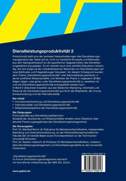 Produktivität stellt eine der zentralen Herausforderungen des Dienstleistungsmanagements dar. Dabei gilt es, nicht nur bewährte Konzepte und Methoden aus dem Sachgüterbereich an die spezifischen Gegebenheiten des Dienstleistungssektors anzupassen. Es ist vielmehr auch eine vertiefte Diskussion notwendig, die sich aufgrund der charakteristischen Merkmale von Dienstleistungen auf neue Methoden und Fragestellungen fokussiert. Vor diesem Hintergrund wurden dem Thema "Dienstleistungsproduktivität" zwei Sammelbände gewidmet, in denen profilierte Wissenschaftler und Vertreter der Praxis in insgesamt 38 Beiträgen zeigen, was genau unter Dienstleistungsproduktivität zu verstehen ist und wie Dienstleistungsproduktivität sichergestellt werden kann.