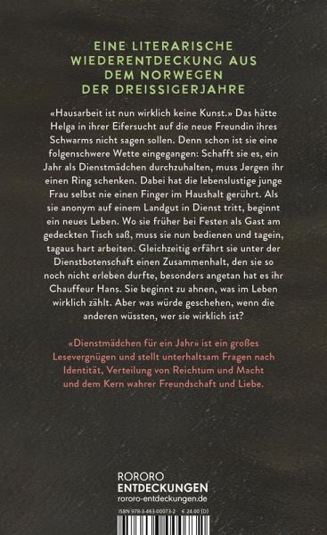 Wie konnte ihr das passieren? Eben noch diskutierte Helga, das Abitur frisch in der Tasche, mit ihren Freundinnen und Freunden im Café darüber, ob Frauen richtig anpacken können. Und im nächsten Moment schlägt die lebenslustige Tochter aus gutem Hause dem jungen Mann, den sie gern heiraten würde, eine Wette vor: Schafft sie es, ein Jahr als Dienstmädchen durchzuhalten, muss Jørgen ihr einen Ring schenken. Dabei hat sie selbst nie einen Finger gerührt. Als sie anonym auf einem Landgut in Dienst tritt, muss sie sich immer wieder neu beweisen. Wo sie früher bei Festen als Gast am gedeckten Tisch saß, muss sie nun bedienen und tagein, tagaus waschen, putzen, kochen. Als jemand Helga erkennt, erfahren alle in Küche und Hof, dass sich die junge Frau als eine andere ausgegeben hat, auch Chauffeur Hans, mit dem sie mehr als gut auskommt. Dabei beginnt Helga durch ihre neuen Freundinnen und Freunde gerade erst zu verstehen, was im Leben wirklich zählt.
